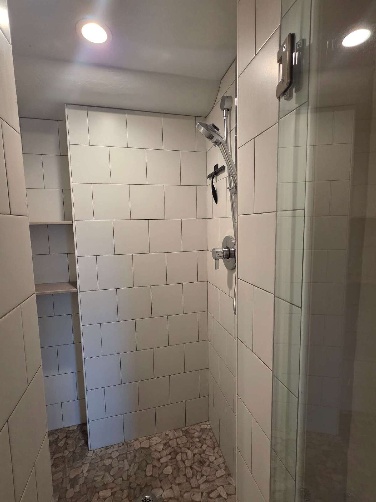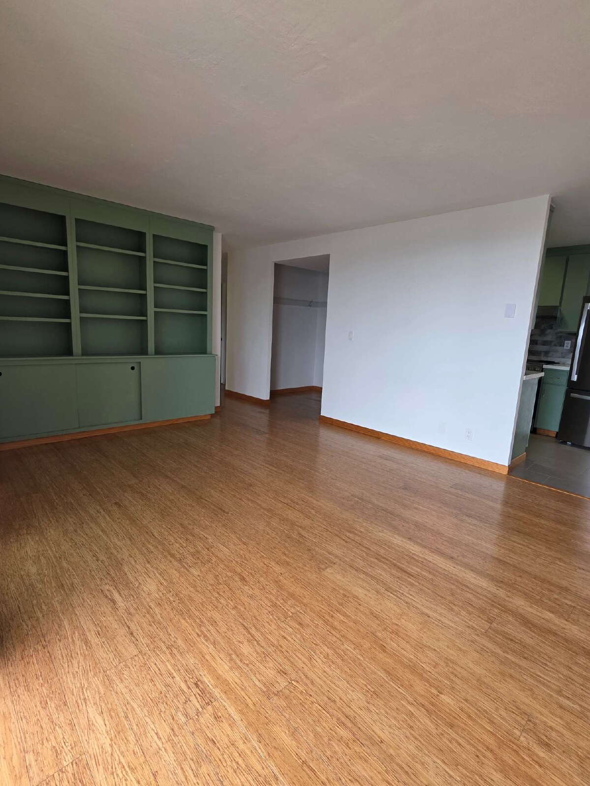 The custom-painted interiors and built-in cabinetry create a refined and functional space. Enjoy a fully remodeled kitchen featuring stainless-steel appliances, sleek countertops, and contemporary cabinetry. The spa-inspired bathroom has been completely renovated, showcasing a custom walk-in shower and stylish fixtures. Real hardwood floors flow throughout, adding warmth and sophistication.