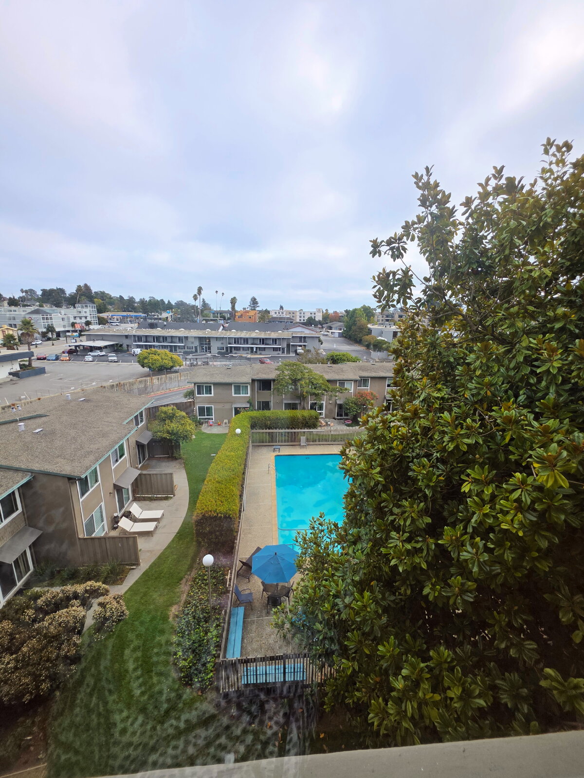The oversized primary bedroom offers three closets for ample storage, while the home includes assigned parking and on-site laundry for your convenience. Take in ocean views while doing your laundry, relax by the community pool, and enjoy the comfort of a secure, gated setting — all just minutes from downtown Santa Cruz, the Boardwalk, beaches, and Pacific Avenue’s shopping and dining.